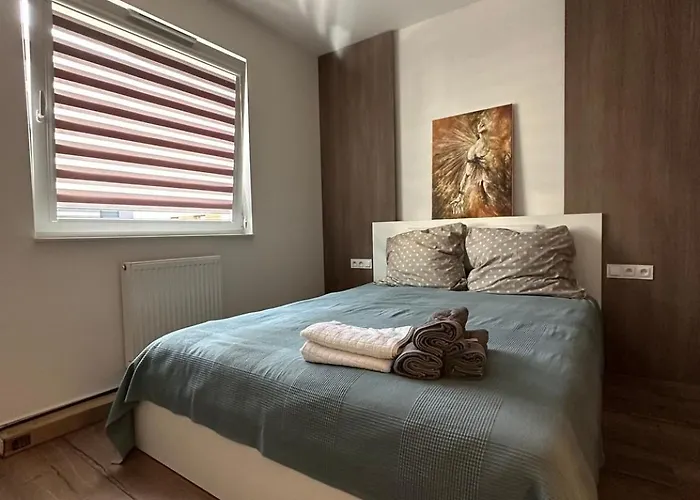 Ein Herd und ein Geschirrspüler gehören ebenfalls zur Ausstattung von einer kompletten Küche. Die nächstgelegene Bushaltestelle Inflancka - Gibalskiego befindet sich in unmittelbarer Nähe von dieser Unterkunft. Die Gäste können auf einer Terrasse entspannen.